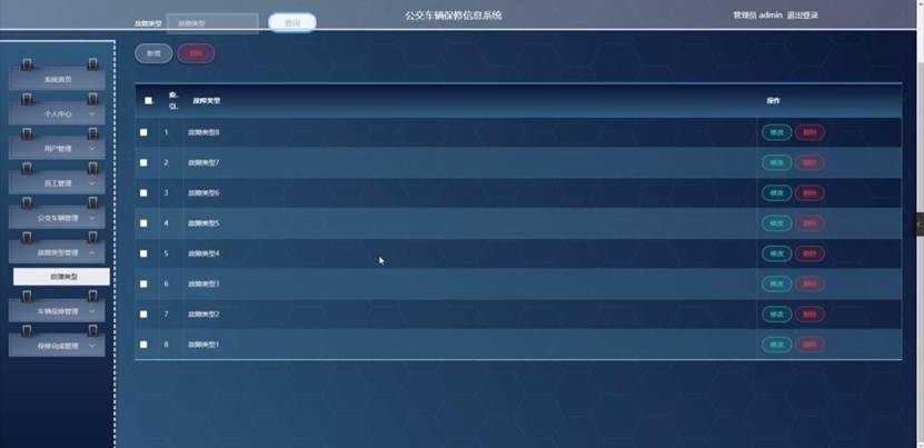 管理员点击故障类型管理。在故障类型页面输入故障类型进行查询、新增或删除故障类型列表,并根据需要对故障类型详情信息进行修改或删除操作;如图5-6所示: