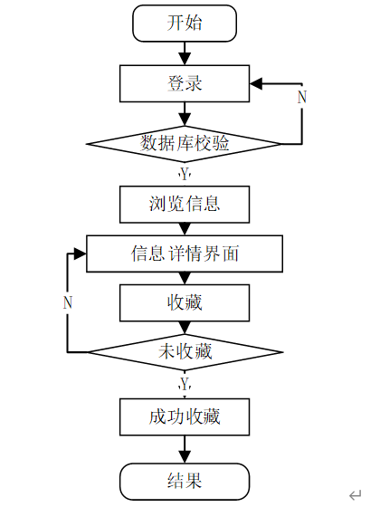 在购药管理系统中,用户登录后,浏览购药管理系统药品信息详情界面能进行信息收藏,用户收藏信息的流程图如图3-5所示: