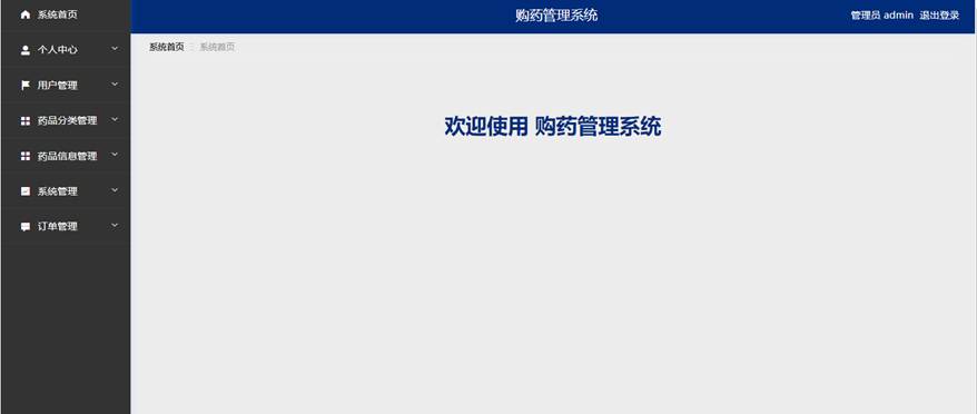 管理员进入主页面,主要包括对个人中心、用户管理、药品分类管理、药品信息管理、系统管理、订单管理等进行操作。管理员主页面如图5-8所示: