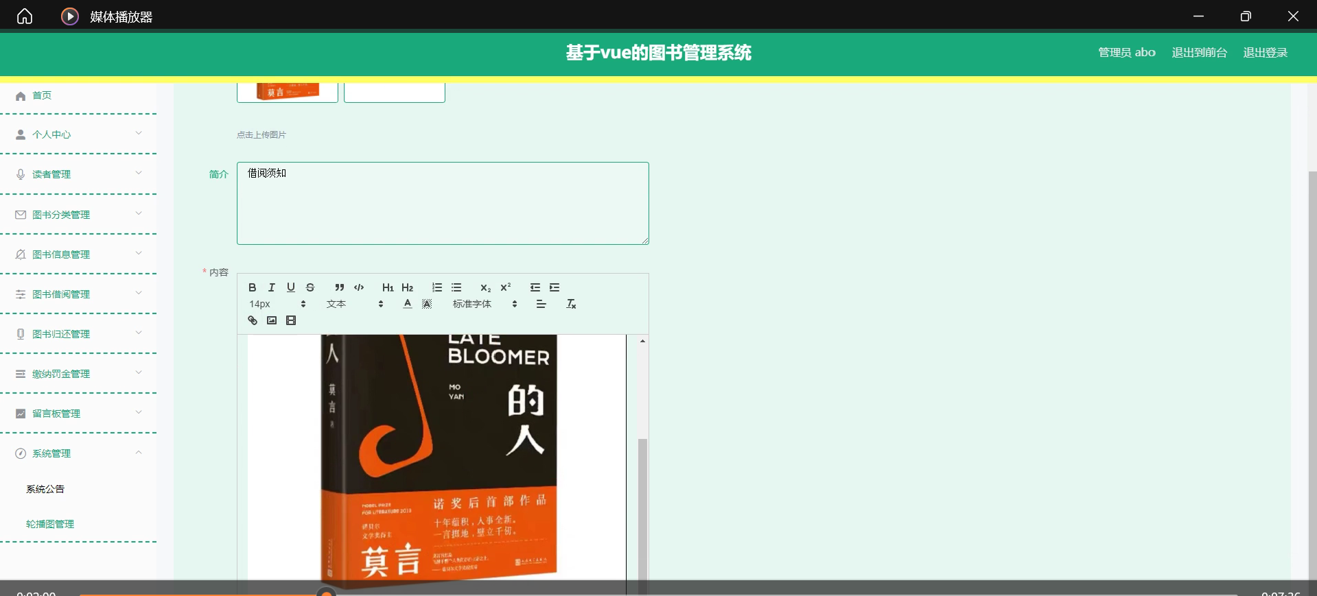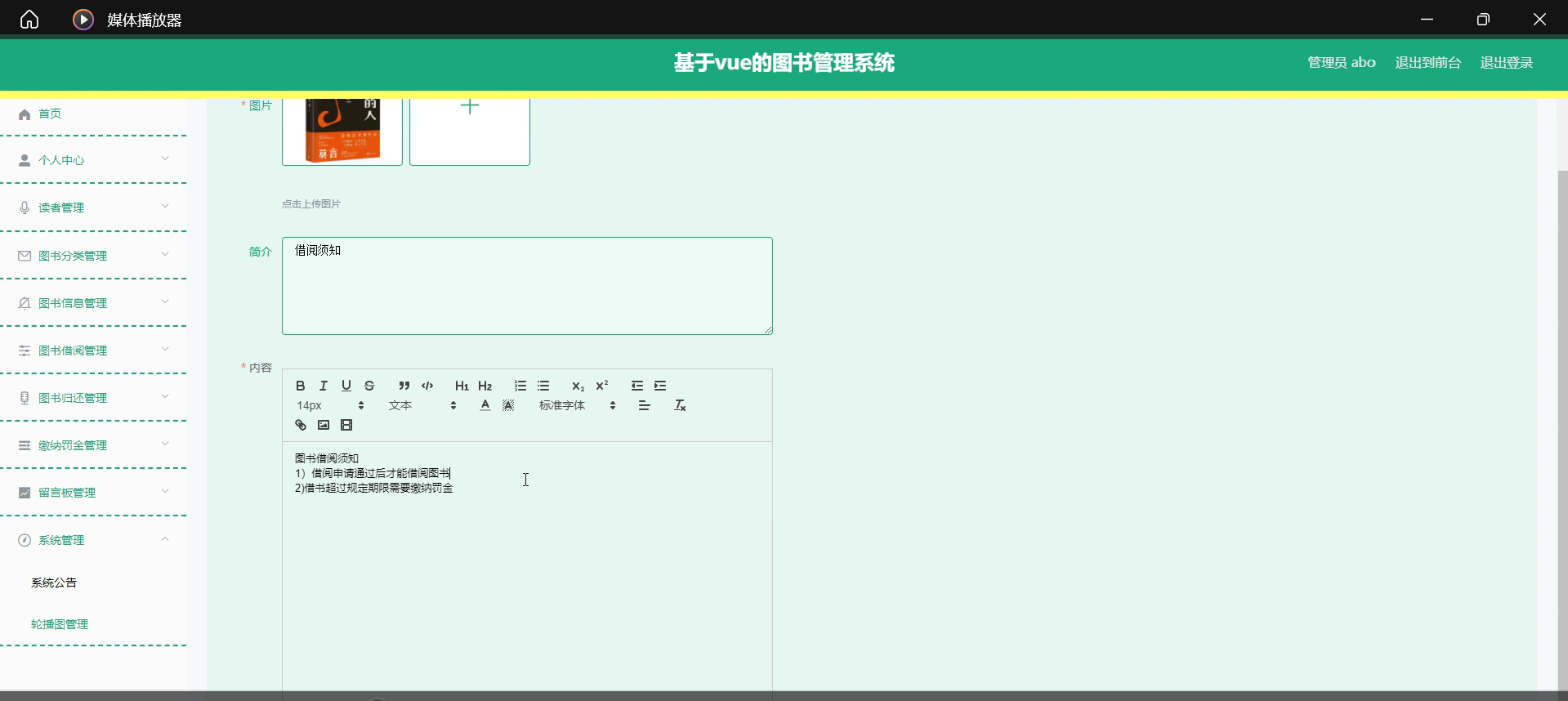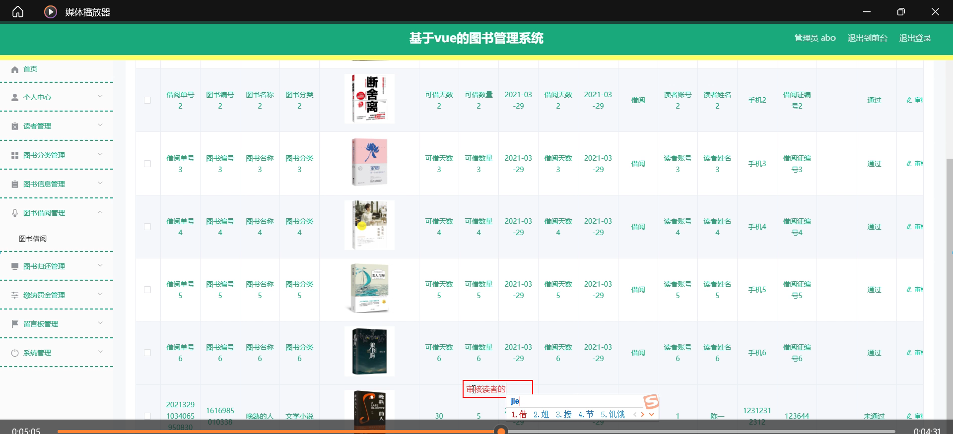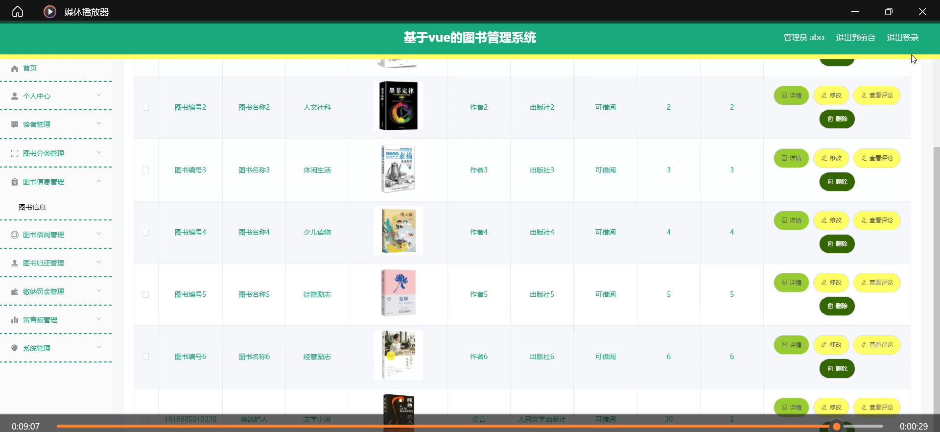 本课题旨在设计并实现一个基于SSM框架与Vue前端框架的图书管理系统,系统主要功能包括读者管理、图书分类管理、图书信息管理、图书借阅管理、图书归还管理以及缴纳罚金管理等模块。