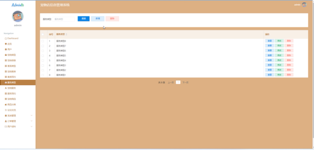 服务类型管理:管理宠物服务的类型,如美容、医疗等。