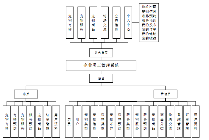 宠物店信息管理系统综合网络空间开发设计要求。目的是将传统管理方式转换为在网上管理,完成宠物店信息管理的方便快捷、安全性高、交易规范做了保障,目标明确。宠物店信息管理系统可以将功能划分为管理员功能、用户功能和店员功能。