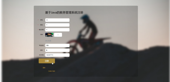 在注册流程中,学生在Vue前端填写必要信息(如学号、密码等)并提交。前端将这些信息通过HTTP请求发送到Java后端。后端处理这些信息,检查学生名是否唯一,并将新学生数据存入MySQL数据库。完成后,后端向前端发送注册成功的确认,前端随后通知学生完成注册。这个过程实现了新学生的数据收集、验证和存储。具体的学生注册界面如图5-2所示;