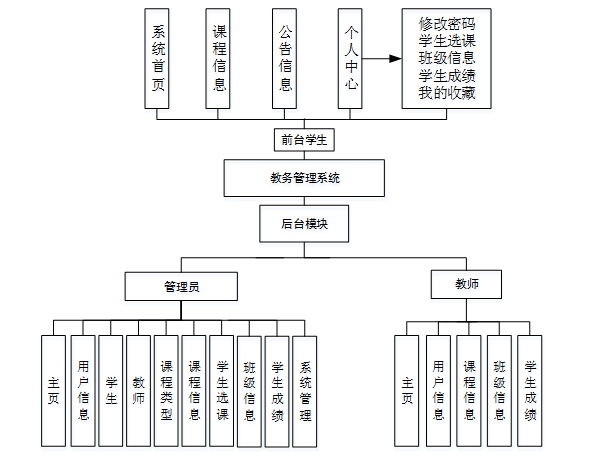 该系统由管理员、学生、教师三部分组成。其中:每个人的权限不同所以功能也就不同;管理员则是根据不同需求设置了不同功能,可以通过后台管理接口管理系统所有信息[9]。