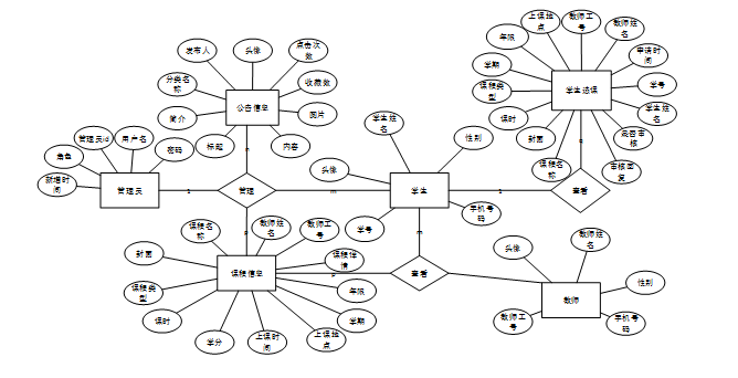 学生:学号、姓名、性别、手机、头像、班级关联。