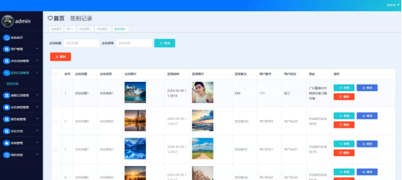 签到记录管理(时间、照片、备注、经纬度、地址)