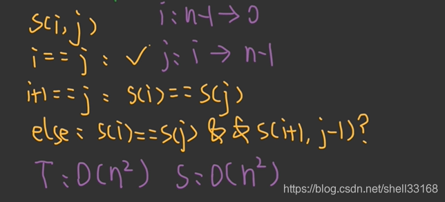 判断s[i,j]时,需要知道s[i+1,j-1]的状态,因此遍历时i从大到小(n-1->0),j从小到大(i->n-1)