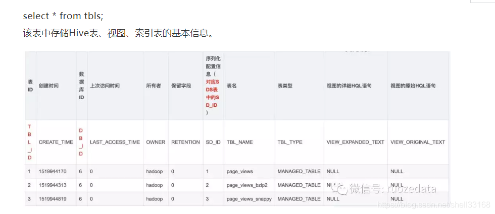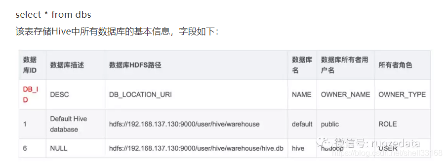 【梳理元数据信息表中的DBS和TBLS中的字段信息】