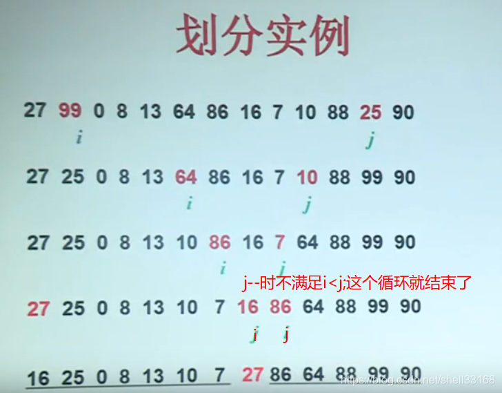 递归的思想,每次选择一个元素,左边的数组都小于选定元素,右边的数组都大于选定元素;