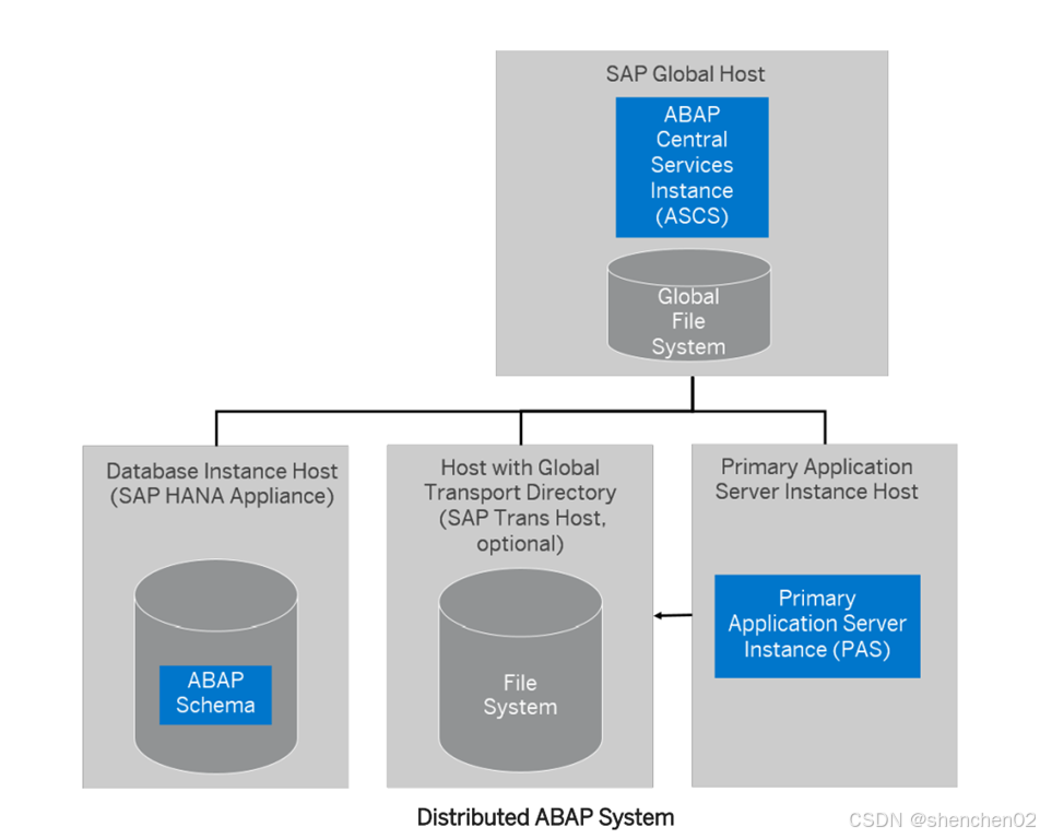 3) PAS(Primary Application Server) 能同时提供 ASCS 和 AAS 的功能,一般用于研测环境单机部署;