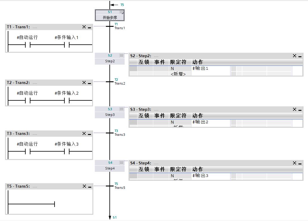 西门子TIA博途软件平台 四种顺序流程的编程方法(以下四种方式支持西门子S7-300/400/1500PLC, 使用S7-1200PLC只支持LAD与SCL的方式)