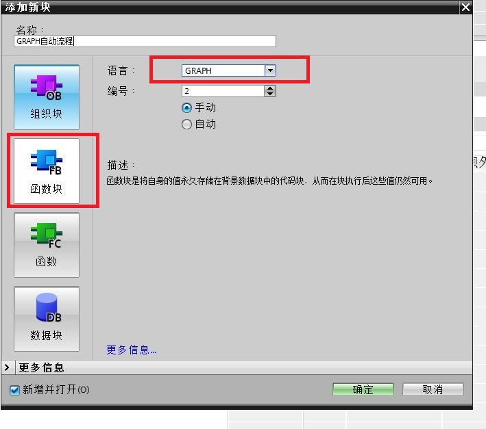 第一步:创建FC或者FB程序块,语言选择SCL语言