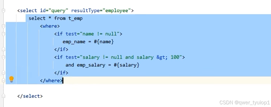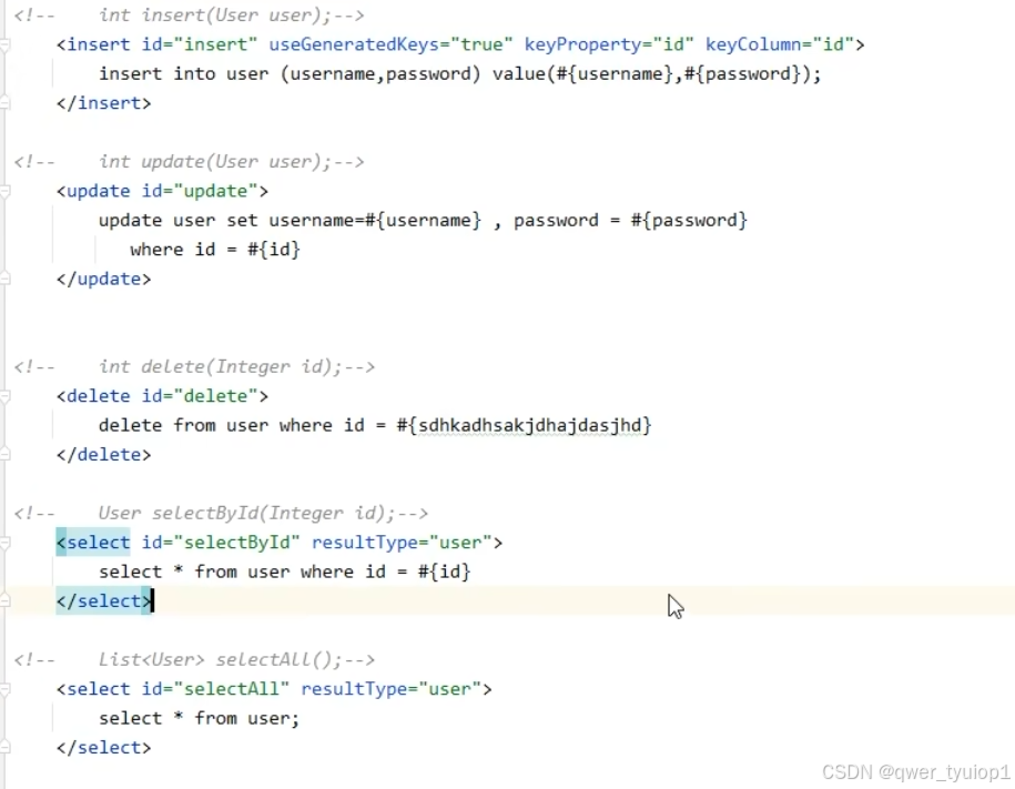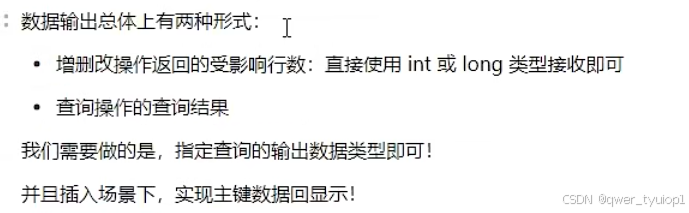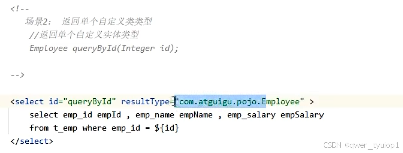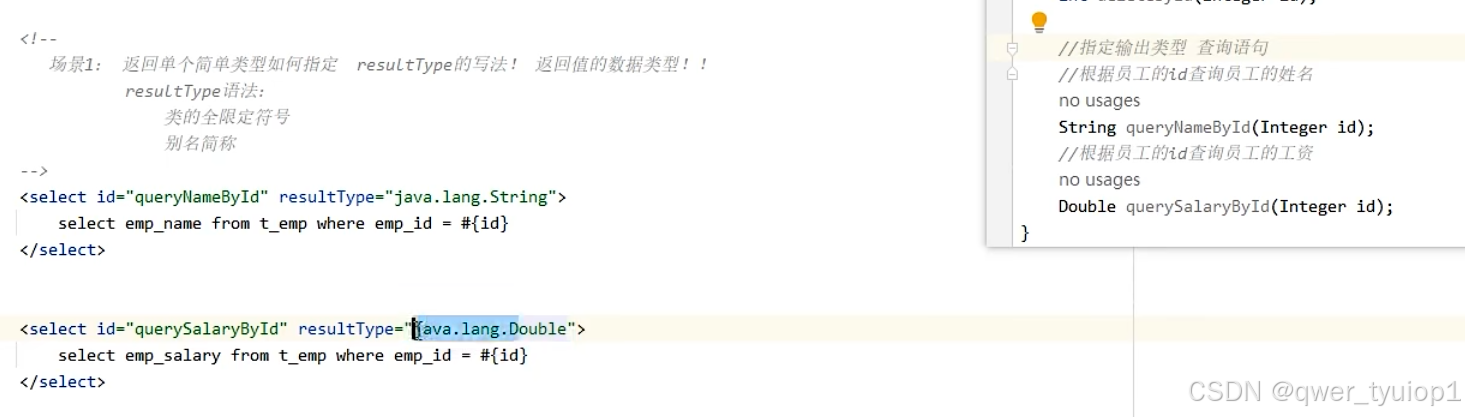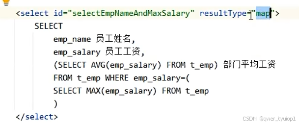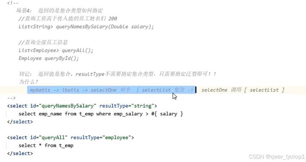 返回list类型:返回值是集合,resulttype不需要指定集合,只需要指定泛型即可。
