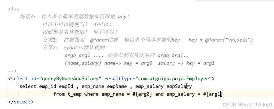 传入多个值:两个方法,@param指定名字,arg0位置参数