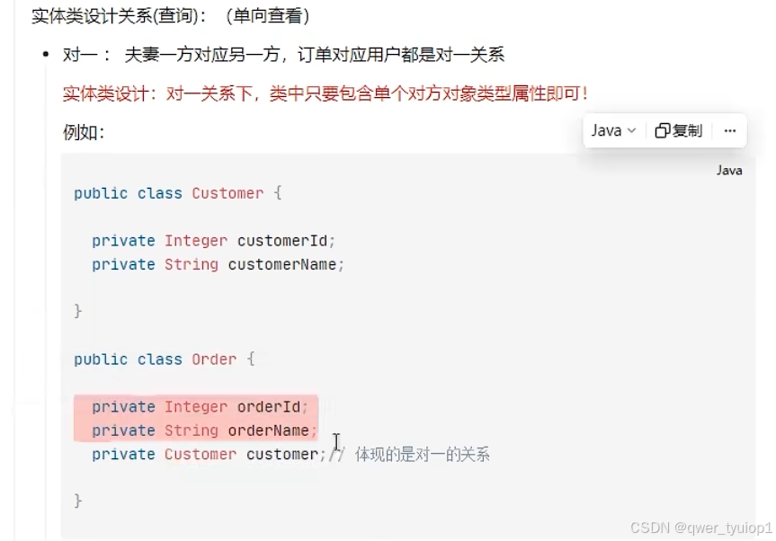 对一,属性中包含对方对象