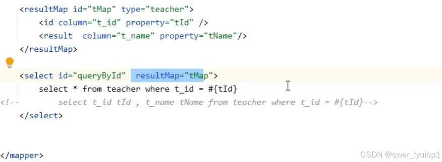让resultmap自动映射result标签,只用写id,association,collection就行。