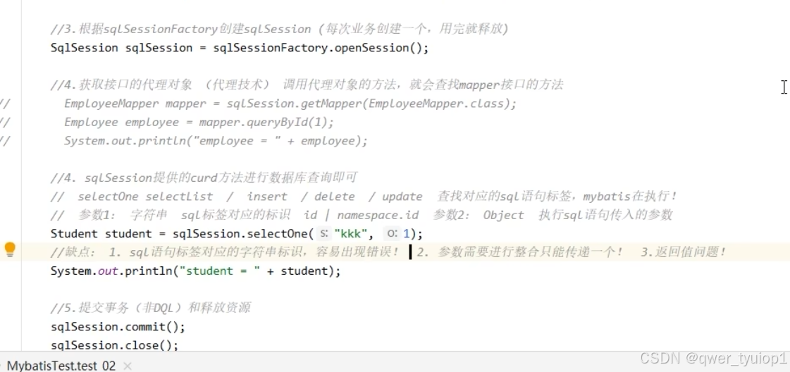 测试的时候,每个测试方法都要写创建sqlsession,可以把这些重复的提取到一个方法中,用@BeforeEach注解,即可在每个测试方法前调用。同样也有@AfterEach