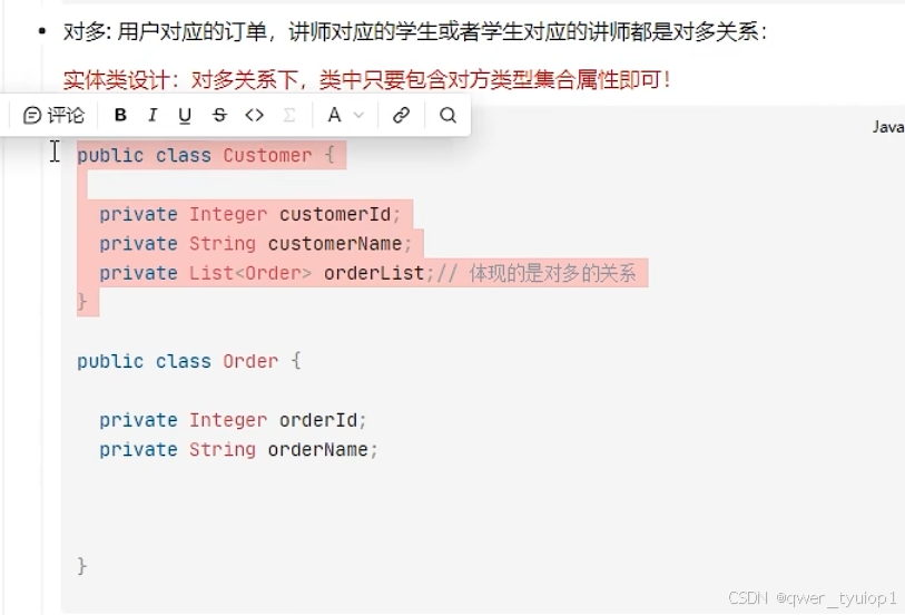 对多,属性中包含对方对象集合