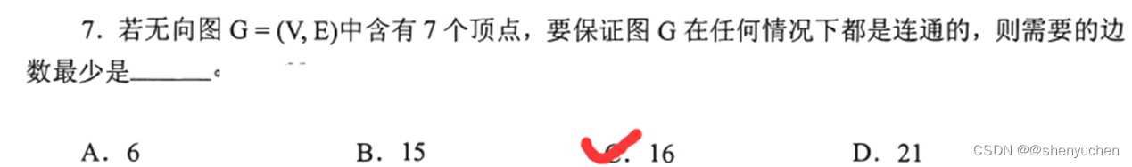 | n是点的个数 1、连通图最少有 n-1 条边(+1就可成环) 2、非连通图最多有 Cn-12 条边 3、在任何情况下都是连通的(=非连通最多边数+1)则要Cn-12 + 1(408.10.T7) | 连通图 任意点2点都有路径 | 强连通图 | 1、点A到点B有路径,且点B到点A有路径,则这两点才是强联通的 2、任意两点强连通,则是强连通图 3、最少有 n 条边,构成一个环 |