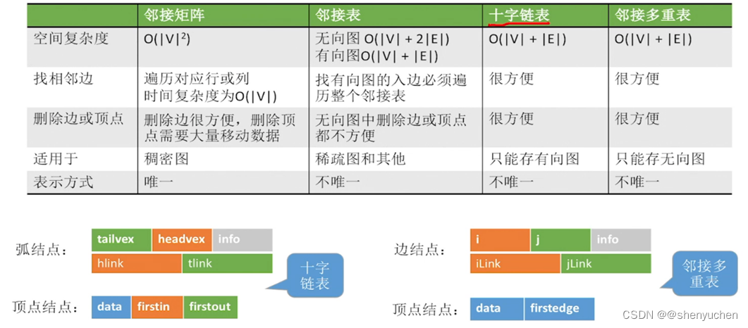 | 图的存储 | 邻接矩阵 (类似线代中的矩阵,是个矩形) | 邻接表 | 十字链表 | 邻接多重表 |