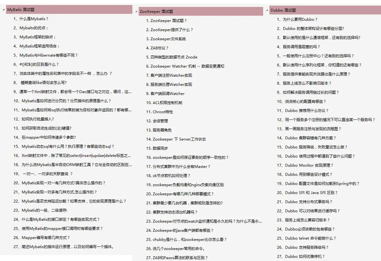 MyBatis 27题 + ZooKeeper 25题 + Dubbo 30题: