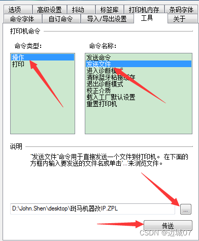 1.正常连接打印机后,下载“斑马机器改IP地址”文件。斑马ZT230驱动及网络打印机设置代码-其它文档类资源-优快云下载