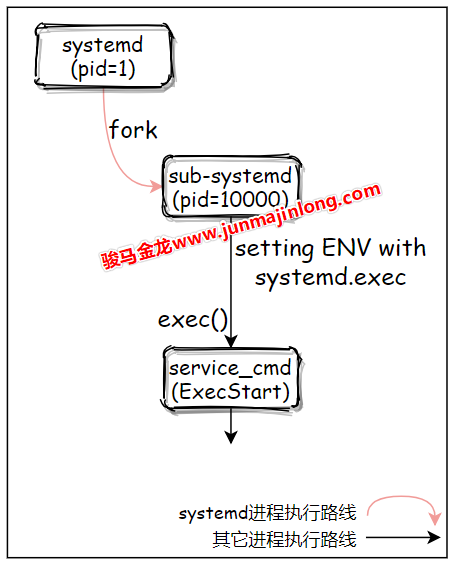 - exec:在 fork 出子 systemd 进程且子 systemd 进程 exec () 调用 ExecStart 命令成功后,systemd 认为该服务启动成功