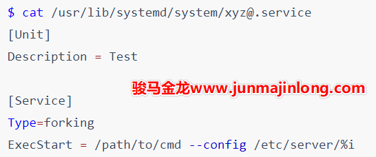 使用 %i %I 这两个特殊符号时,要求 Unit 的文件名以 @为后缀,即文件名格式为 Service_Name@.service。当使用 systemctl 管理这类服务时,@符号后面的字符会传递到 Unit 模板文件中的 %i 或 %I。