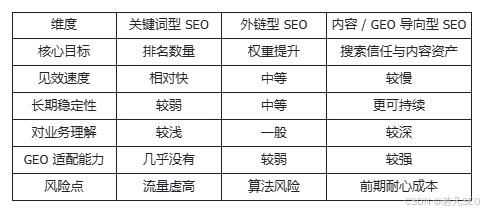 - 理解 SEO 与 GEO 在当下阶段的边界与组合方式