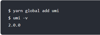3.然后全局安装 umi,并确保版本是 2.0.0 或以上。