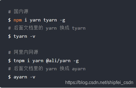 2.推荐使用 yarn 管理 npm 依赖,并使用国内源(阿里用户使用内网源)。