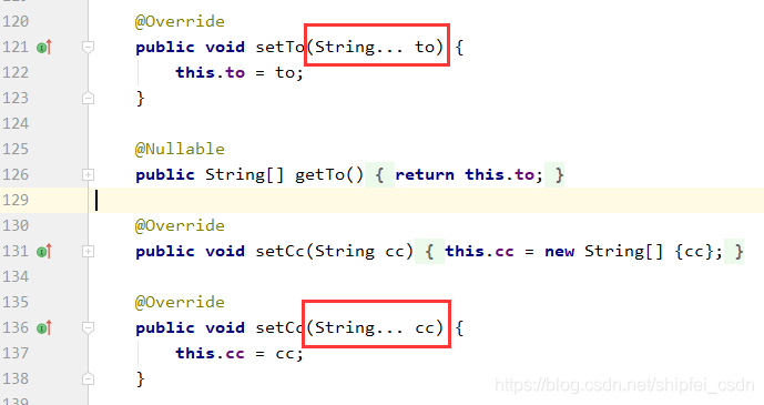今天在看 springboot 中 mail 源码的时候,发现这个有趣的写法,参数类型后面三个点
