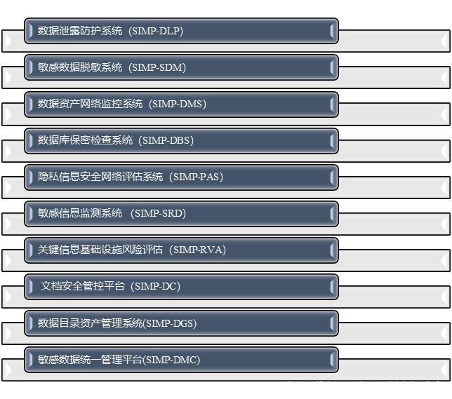 SIMP实现的功能包括梳理与发现企业敏感数据、建立分级分类的数据资产目录库、跟踪敏感数据的变更历史、过滤和控制存储、传输和使用中的敏感数据、全局的敏感数据状态统计、分析与展现等功能。