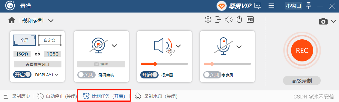 第五步:设置好后点击“确定”,我们可看到“计划任务”是开启的状态,到了设置的时间就会自动录屏了。