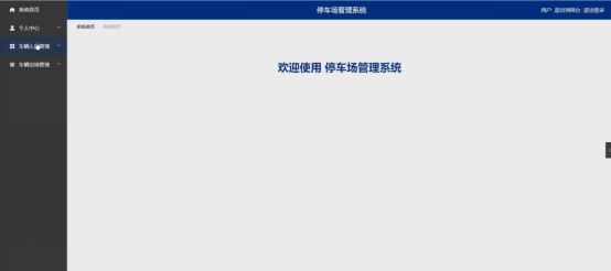 用户进入系统后台主要包括对个人中心、车辆入库管理、车辆出场管理等功能进行操作。用户后台管理页面如图5-12所示: