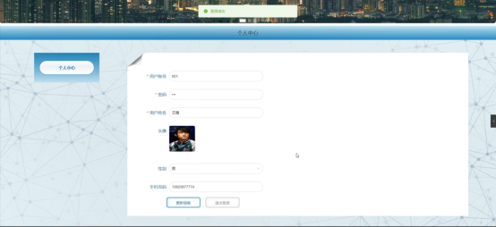 在个人中心页面可以输入个人详细信息进行信息更新操作;如图5-4所示:
