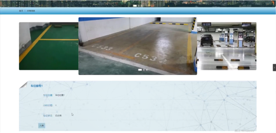 在车位信息页面的输入车位编号和选择车位状态进行查询车位详细信息,并根据需要进行入库操作;车位详细信息页面如图5-3所示: