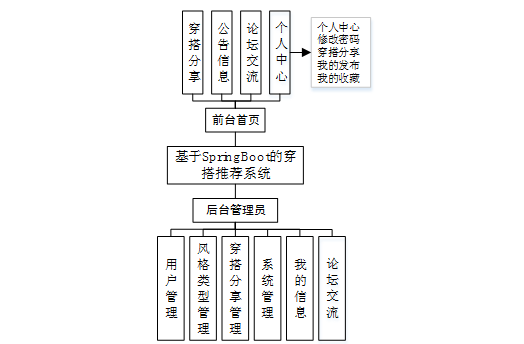 为了更好的去理清本系统整体思路,对该系统以结构图的形式表达出来,设计实现该穿搭推荐系统的功能结构图如下所示: