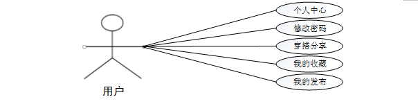 (3)用户主要包括个人中心、修改密码、穿搭分享、我的发布、我的收藏等功能,用户用例图如下所示: