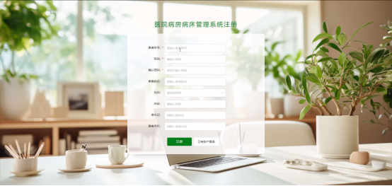 在注册流程中,患者在Vue前端填写必要信息(如用户名、密码等)并提交。前端将这些信息通过HTTP请求发送到Java后端。后端处理这些信息,检查用户名是否唯一,并将新用户数据存入MySQL数据库。完成后,后端向前端发送注册成功的确认,前端随后通知患者完成注册。这个过程实现了新用户的数据收集、验证和存储。系统注册页面如图5-2所示: