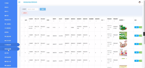 用药信息:药品编号、名称、数量、价格、用药时间、用药说明、药品图片,与库存实时联动。