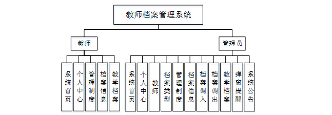 教师档案管理系统在设计与实施时,采取了模块性的设计理念,把相似的系统的功能整合到一个模组中,以增强内部的功能,减少各组件之间的联系,从而达到减少相互影响的目的。系统总体功能结构如图4-1所示。