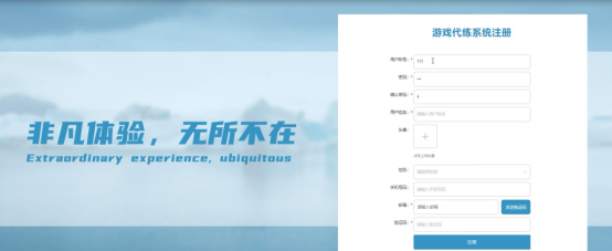 在注册流程中,用户在Vue前端填写必要信息(如用户名、密码等)并提交。前端将这些信息通过HTTP请求发送到Java后端。后端处理这些信息,检查用户名是否唯一,并将新用户数据存入MySQL数据库。完成后,后端向前端发送注册成功的确认,前端随后通知用户完成注册。这个过程实现了新用户的数据收集、验证和存储。系统注册页面如图5-2所示: