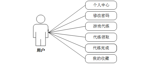 (3)用户可以实现对个人中心、修改密码、游戏代练、代练领取、代练完成、我的收藏等信息进行操作,用例分析如图3-3所示。