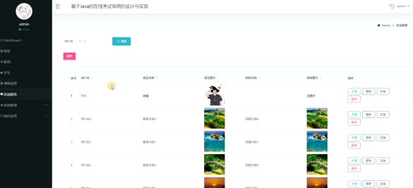 管理员进入主页面,主要功能包括对班级、教师、学生、课程信息、在线留言、系统管理、我的信息等进行操作。管理员主界面如图5-7所示: