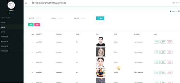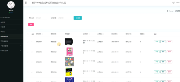 教师进入主页面,主要功能包括对课程信息、题目库管理、在线考试管理、题目管理、考试管理、我的信息等进行操作。教师主界面如图5-14所示: