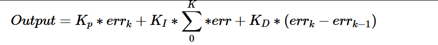 output = Kp * err_now + Ki * err_Sum +Kd * (err_now - err_last);//PID公式