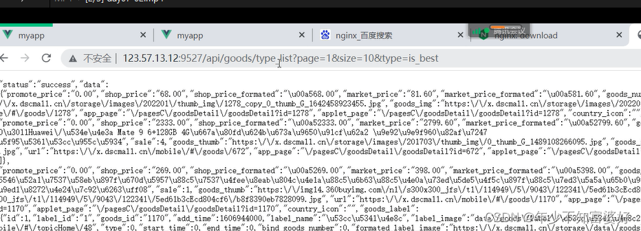 输入服务器IP:端口号 /api/