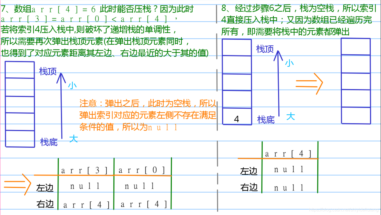 思路1【暴力求解】:首先遍历数组arr中各个元素,然后在遍历的同时再分别向左、右遍历求解第一个比arr[i]大的数。