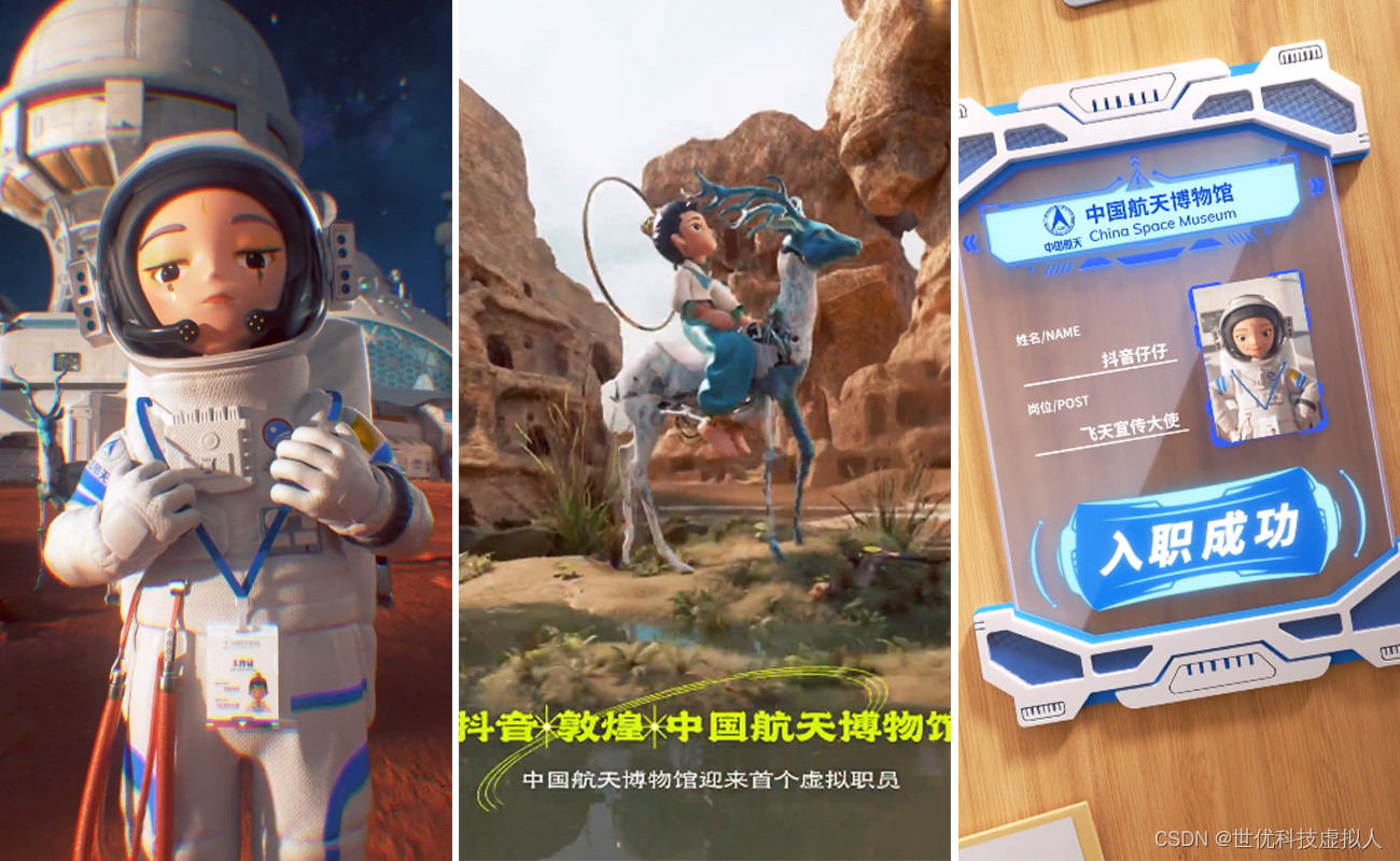 这篇文章讲述了敦煌文创与抖音仔仔、中国航天博物馆的创新联动,虚拟数字人在文旅行业的应用日益凸显,通过提供个性化服务和独特体验推动营销价值提升。世优科技展示了他们在虚拟数字人制作上的技术实力和广泛应用案例。